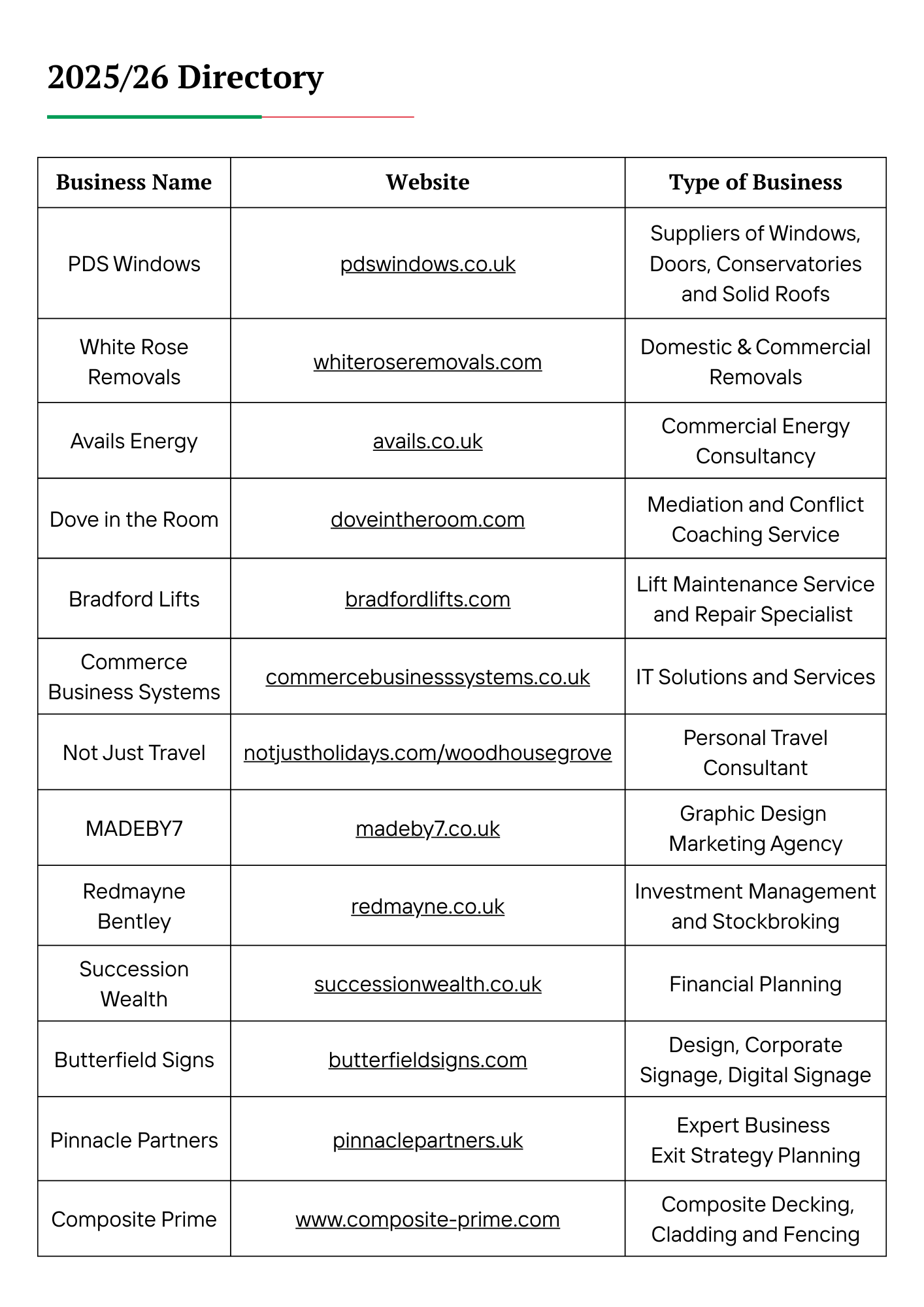 Business Directory 2026/27 information