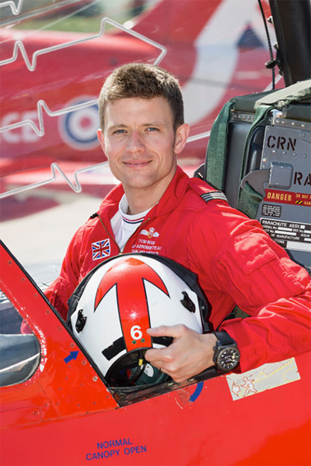 Tom was accepted as a member of the Red Arrows display team in 2015. He has recently been promoted to Squadron Leader and selected to be Red 1. As Red 1, he is primarily responsible for all aspects of the display, from running the training programme and creating and choreographing a new 20-minute aerobatic show, to leading the nine-aircraft.